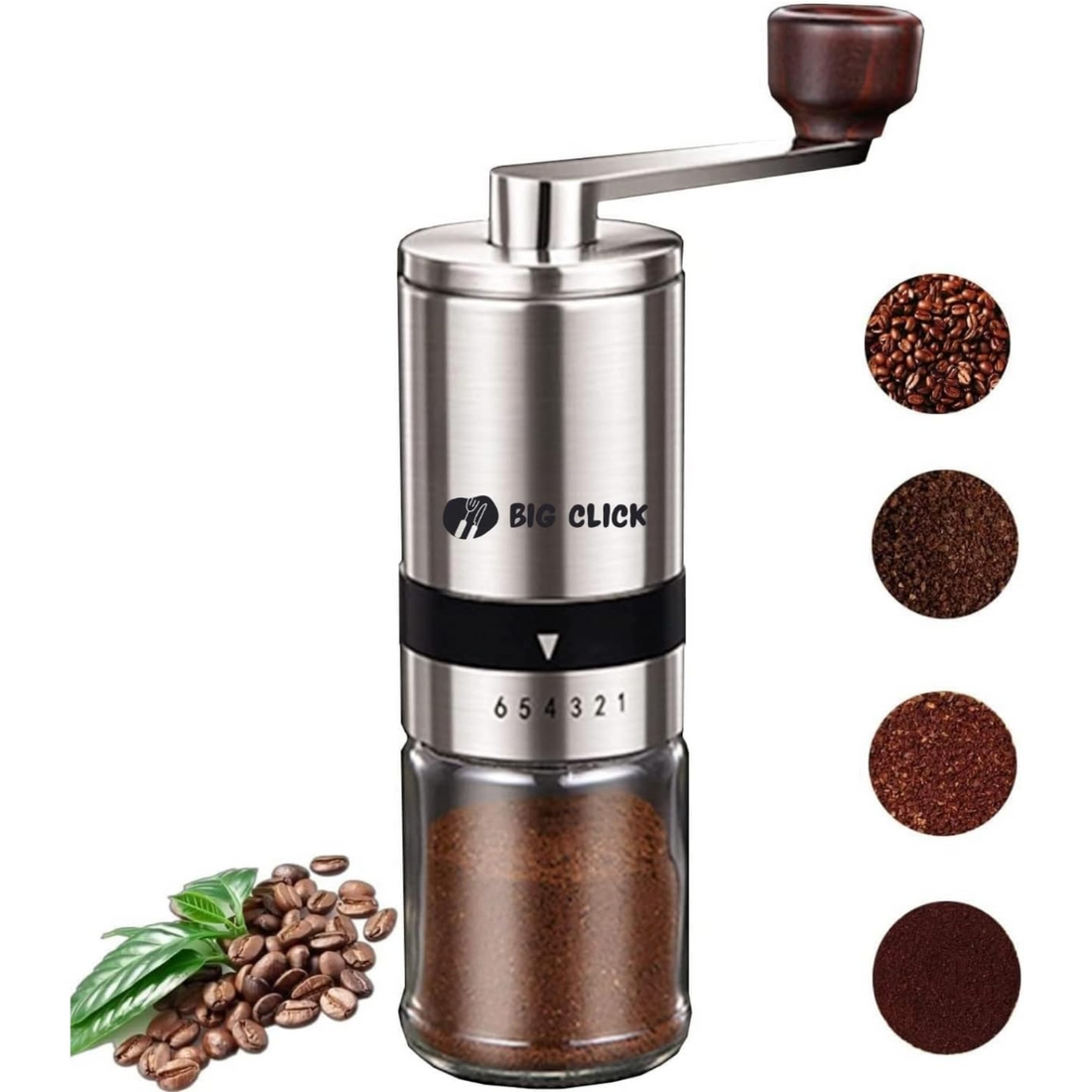 Manual Coffee Grinder with 6 Adjustable Settings & Metal Handle Ceramic Burr Mill & Stainless Steel Body