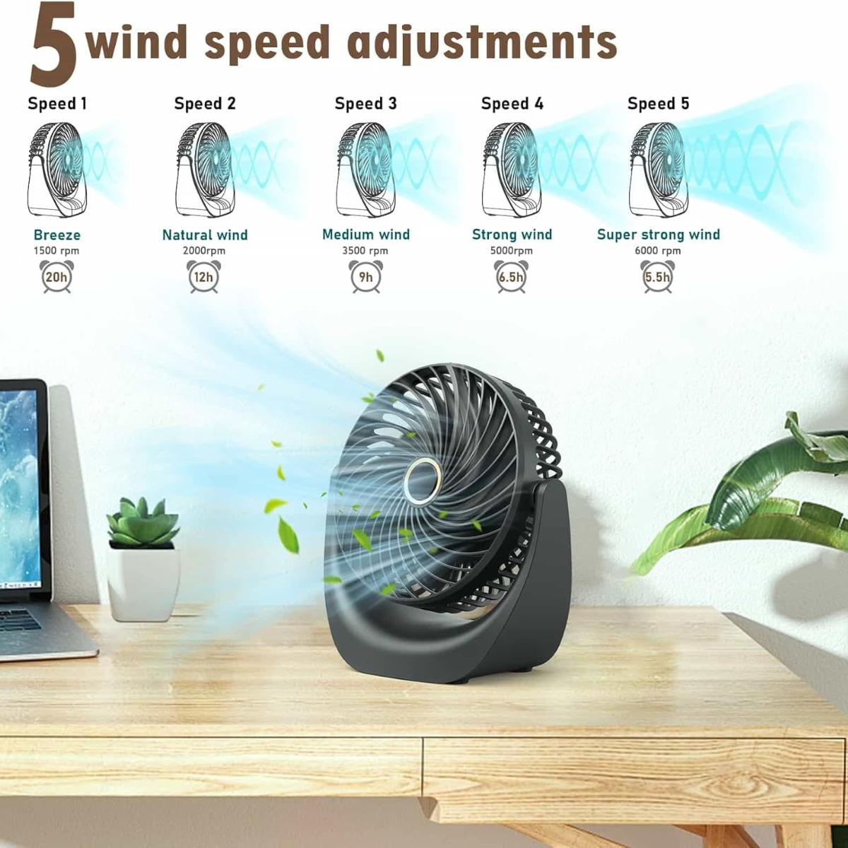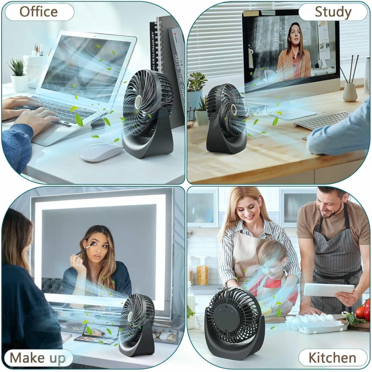 Stay cool and comfortable anywhere with this compact and powerful desk fan. Designed for convenience and performance, it features strong airflow, whisper-quiet operation, and a 360° rotatable head to direct the breeze exactly where you need it. Perfect for your desk, nightstand, or any small space.