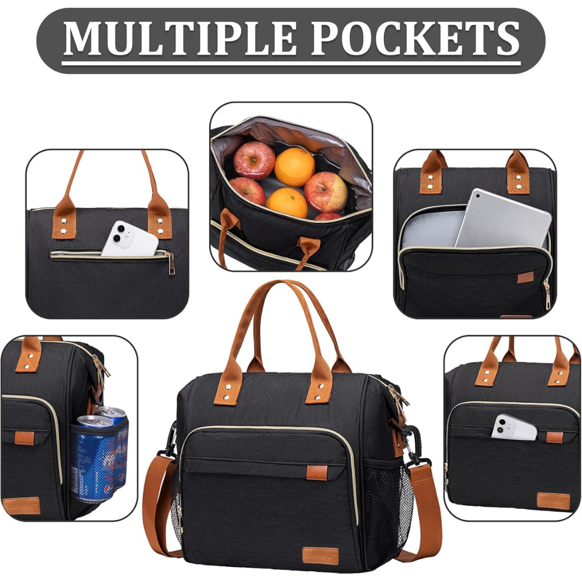 Spacious & Organized – Roomy interior fits meals, snacks, and drinks with extra pockets for utensils or small items.