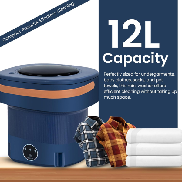 5 attractive and engaging bullet points for the Mini Portable Washing Machine – Foldable 12L Washer with Dryer: