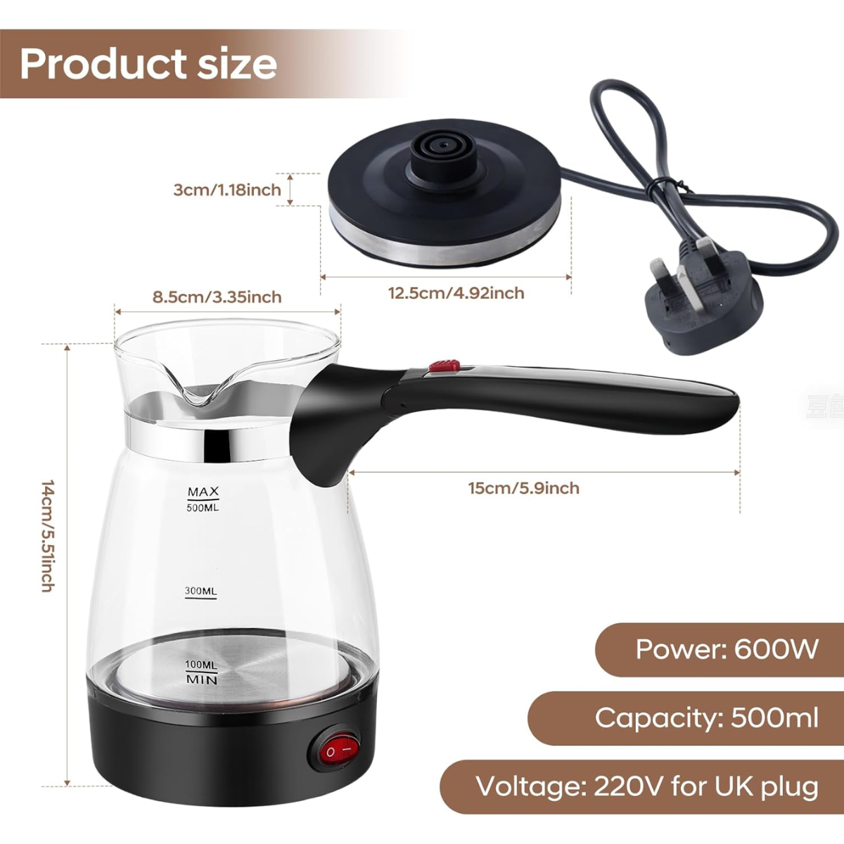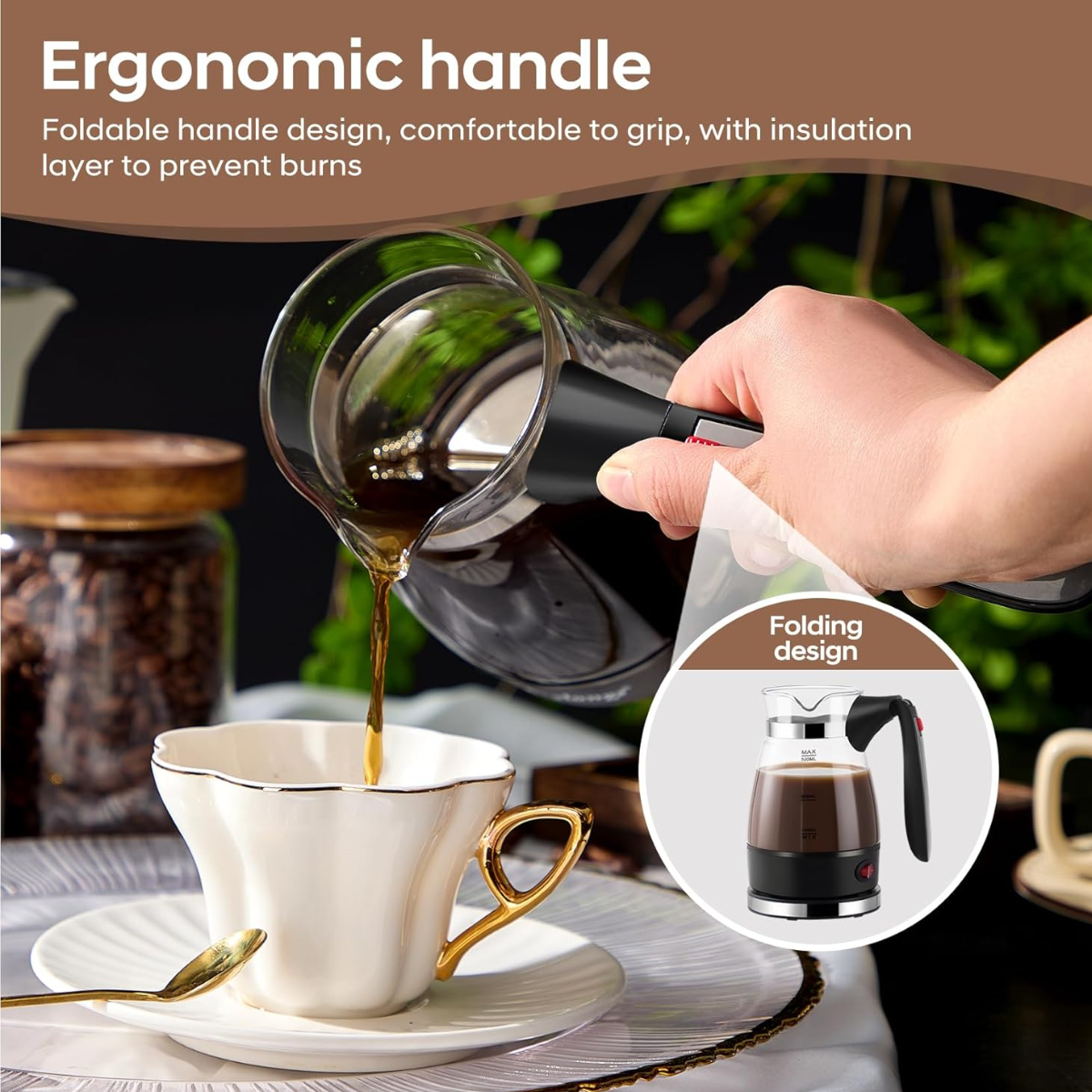 Turkish Coffee Maker, Portable Electric Glass Turkish Coffee Machine with Foldable Handle
